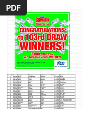 103rd Kcc 30 Million Mega Raffle 103rd Draw List Of Winners